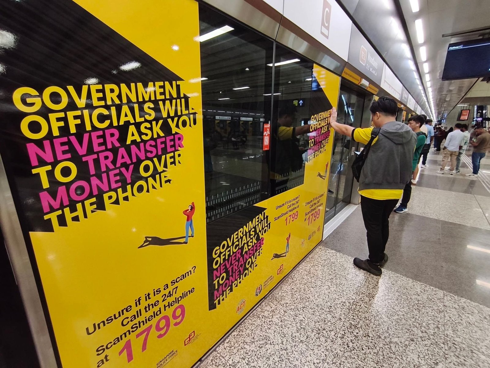 Catatan foto: sebuah iklan layanan masyarakat terdisplai di stasiun mrt Woodland, Singapura, foto diambil pada 12 Februari 2026.